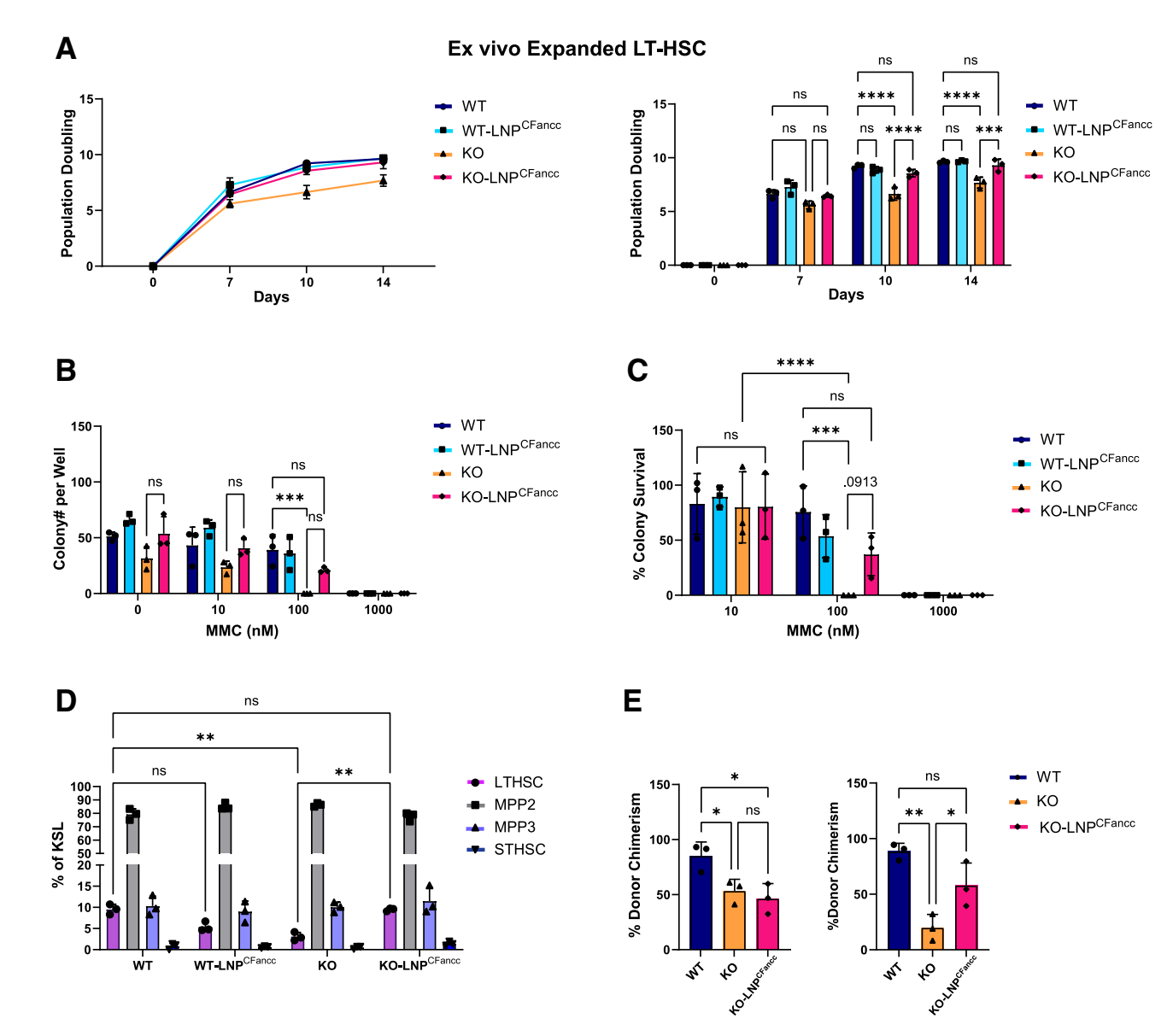 参考文献:Banda, O., Adams, S. E., Omer, L., Jung, S. K., Said, H., Phoka, T., ... & Kurre, P. (2025). Restoring hematopoietic stem and progenitor cell function in Fancc mice by in situ delivery of RNA lipid nanoparticles. Molecular Therapy: Nucleic Acids, 36, 1-12.