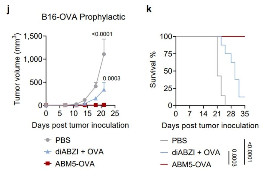 作为STING激动剂,SABER能激活下游信号通路,增强树突状细胞的佐剂效应。