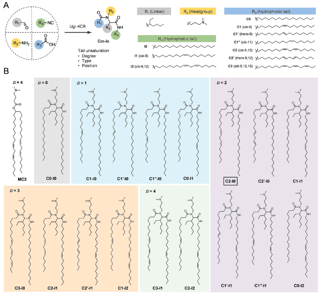 参考文献:Ge, Xueer, et al. "Impact of tail unsaturation in ionizable lipids on mRNA delivery efficiency and immunogenicity of lipid nanoparticles." Journal of Controlled Release (2025): 113906.