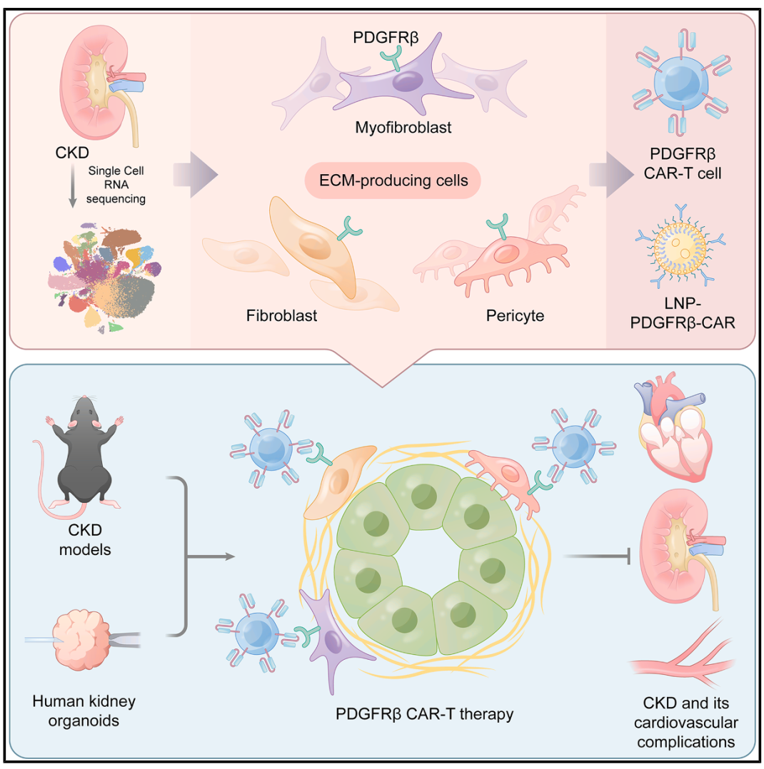 PDGFRβ CAR-T细胞减少ECM产生细胞并恢复肾功能
