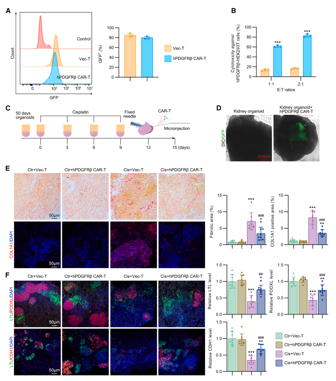 hPDGFRβ CAR-T细胞减轻人多能干细胞来源的肾脏类器官纤维化