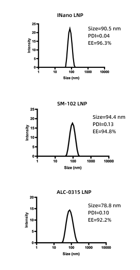 近年来,随着mRNA疫苗的上市使用,SM-102 LNP和ALC-0315 LNP已被大量临床前和临床研究验证其有效性和安全性,是作为研究阳性对照的不二选择。除此之外,SM-102 LNP和ALC-0315 LNP还可以用于前期管线开发验证或仪器校验。针对这部分的客户需求,迈安纳针对性开发了对应验证试剂盒,期待广大客户的试用和使用。