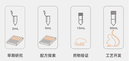 您是否碰到由于制备体积不够问题,导致您invivo实验或者下游工艺探索实验处处受到限制? INanoTM L+快速纳米药物制备系统最大制备体积可达60ml,极大的满足了绝大部分应用的需求! |